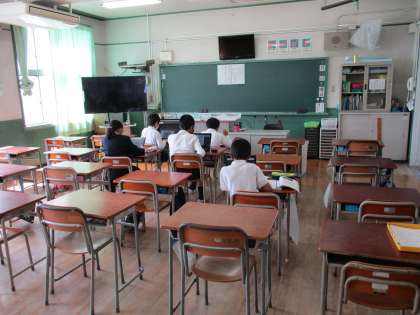 朝の預かりでは、自分の席でeライブラリを行っています。