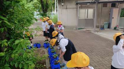 朝の用意をしてから、8時25分までの間に水やりにいくことにしていますが、まだまだ朝の用意に時間がかかるため、1時間目生活科の時間の初めに水やりにいきました。