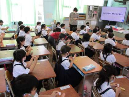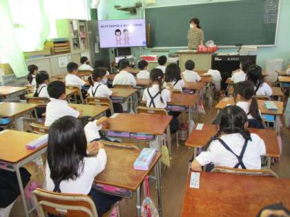 「せいけつなからだとたいせつなからだ」の保健指導を行いました。清潔については、「手洗い」「入浴」「歯みがき」を中心に話をしました。自分の手の汚れを確認する場面では、「真っ黒!!!」と驚く様子が伺えました。大切な体については、「プライベートゾーン」についての絵本を読み聞かせました。指導後は、「毎日お風呂に入ろうと思う!」「大事なところは守ろうと思う」などの意見を聞くことができました。