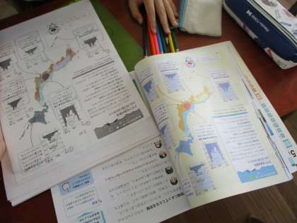 6つに分かれている日本の気候を元に、『気温』と『降水量』の違いを比較していきました。色鉛筆で気候ごとに分け、特徴には赤で印をつけていきました。四季がある日本ならではの違いについて皆で学ぶことが出来ました。(*^0^*)