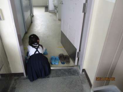 さっそく女の子が、男子トイレのスリッパをきれいに揃えてくれている所を見かけました。自分が使ったのなら当然ですが、女の子は男子トイレには行かないので、とてもありがたい心遣いですね。こうした姿を1年生が見て、2年生はすごいな、と見習ってくれたら、うれしいですね。