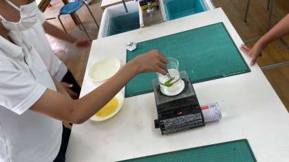 結果がうまくでない班もありましたが、いろいろな器具を使って順序良く実験することができていました。