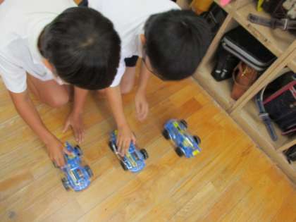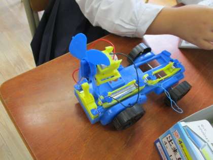 実験の最後は、モーターカーやプロペラカーを組み立てて走らせました!