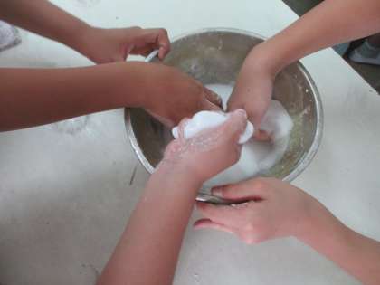 ドロドロのかたまりをつかむとギュッと手の中で固まっていますが・・・