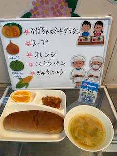 かぼちゃのミートグラタンは、ミートソースの味がよく、かぼちゃの甘みとよく合い、おいしかったです。