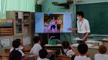 校長先生がランニングをしているときに、目が見えない視覚障がいがある人と一緒に走っている方から、「一緒に走ってくれませんか?」と声をかけられたそうです。「いいですよ。」と答えた校長先生が、その後も、一緒に走る練習を続けているというお話でした。そして、たくさんの視覚障がいがある方からも声がかかり、たくさんの人との出会いがあり、一緒にランニングを続けてらっしゃるそうです。一緒に練習している方には、パラリンピックでメダルを取った方もいらっしゃいます。