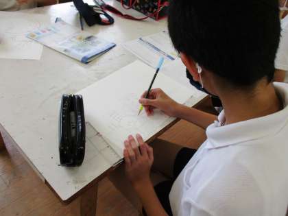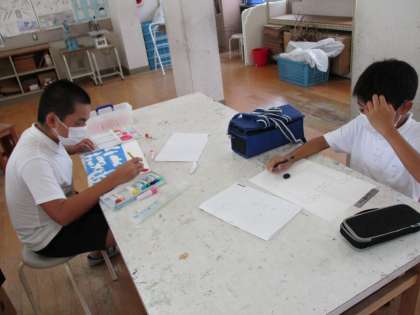 図工ではSDGsについて1つの目標を選び、目標達成にむけてポスターをかいています。
