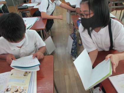 ペア学習です。自分の考えと友達の考えの意見交換です。学びを更なる学びへと発展させます。これからも、どんどん勉強は難しくなるけれど、皆で頑張っていこうね。(*^ー^*)