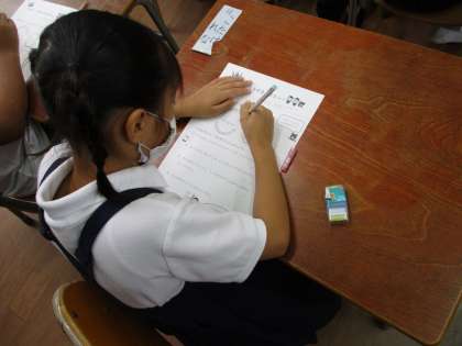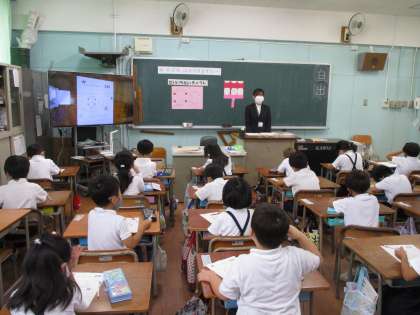 1時間目に養護教諭の実習生による、歯みがき指導がありました。「第一大臼歯」の話や音楽に合わせ楽しく歯みがきの方法を学びました。大人になっても使う歯、大切にできるようにしましょう。