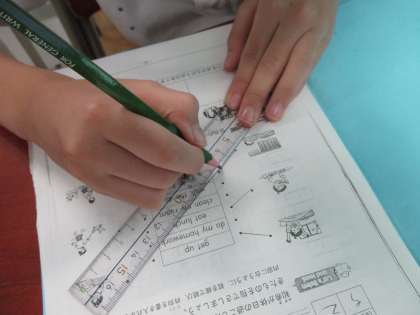 英語で『What time do you get up?』という単元を行いました。友達に『何時に何をするか』質問をしたり、『何時に何をするか』という質問に答えたりしました。