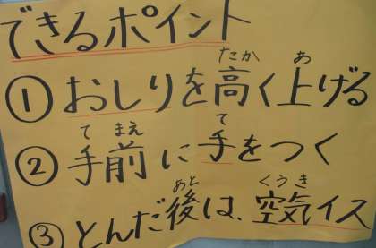 体育の時間に跳び箱をしました。開脚とびのほかに、台上前転もすることができました。最初はこわかったですが、上手にすることができました。