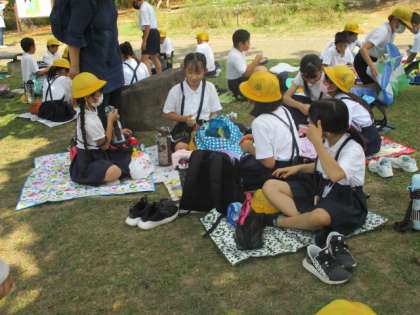 今日はとても天気が良く、青空の下で食べるお弁当は、特別においしかったね!