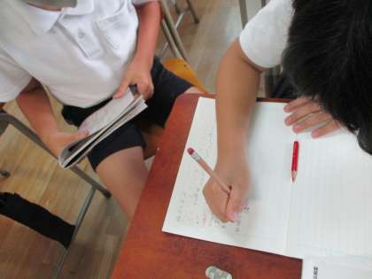 「この言葉は、どんな風に変わるのかな?」友達とペア学習をして意見交換をしました。