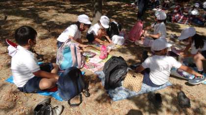 小学校では初めての、学校の外に出ていく行事の体験でしたが、がんばって歩くことができ、みんなと楽しく遊ぶこともできて、いい1日になりました。