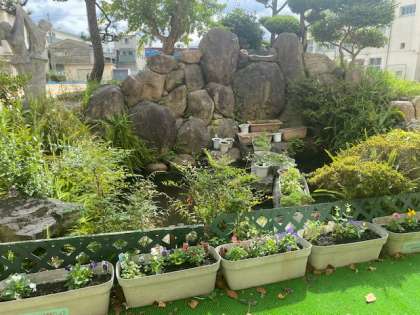9月頃から池の周りにプランターを置いています。美しい花がたくさん咲いています。