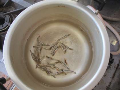お味噌汁づくりでは、煮干しの『頭』と『はらわた』を取り、出汁つくりから始めました。なぜ、『頭』と『はらわた』を取り除くのかという理由は、先生から教わりました。