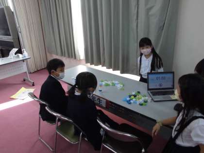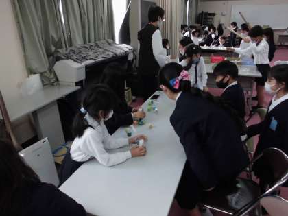 1年生はボトルキャップボーリング、3年生はボトルキャップ積み、4年生はボトルキャップストローサッカー、5年生はボトルキャップ釣り、6年生はボトルキャップダルマ落としでした。