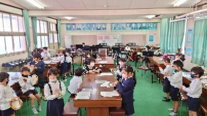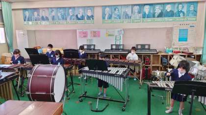 音楽科の時間に、学習発表会で発表する楽器の演奏を練習しました。