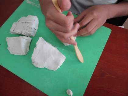 図画工作科の単元『わたしのいい形』で、油粘土を使用して『シーサー作り』の練習を行いました。