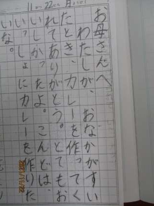 の順序で書いていくことを知った上で、おうちの人にお手紙を書く活動に取り組みました。