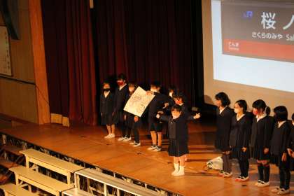3年生は環状線一周の劇を行いました。各駅にある建物や場所について発表しました。大きな声で発表していました!!