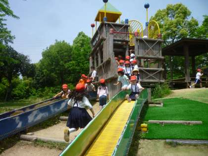 元浜緑地には、大きなアスレチックや長い滑り台があるので、子どもたちは体いっぱい動かして思いっきり遊べて満足そうでした。