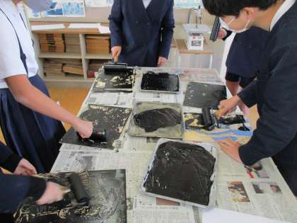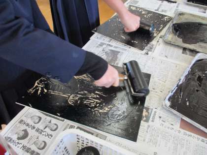 インクをつけてバレンでしかっりおさえて、紙に刷りました。