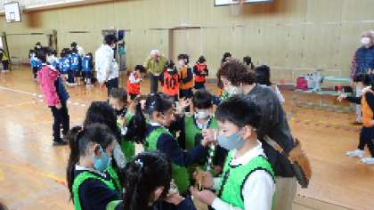 12月10日(金)の3・4時間目に、1・2年生と地域の方々との、「昔遊び地域交流」がありました。