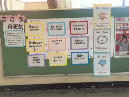 今日の「こころの天気」はどうですか?保健室前の掲示板には「こころの天気」について掲示しています。