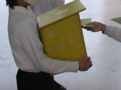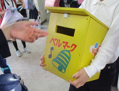 ベルマーク委員会の児童が朝早くから登校し、元気に声掛けをしてベルマークの封筒を集めてくれました。