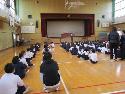 今日の児童朝会では、校長先生からいじめについて考えるお話がありました。
