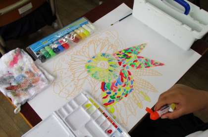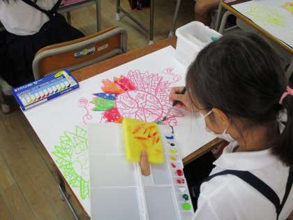 子どもたちは,絵具で様々な色を作り出したり,塗り方を工夫したりと思い思いに作品に取り掛かっていました。