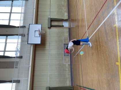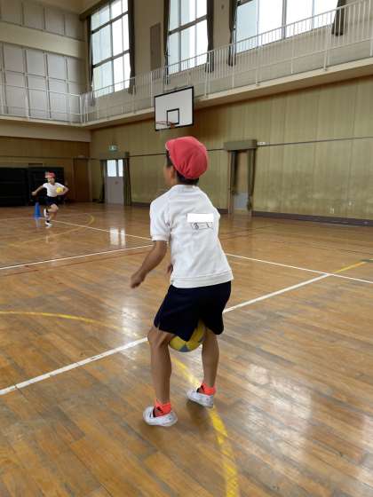 最後は、手を使わずにボールを運んでねと伝えると、「どこではさもうか」「はさんで速く進めることろはどこかな」など考えていました。