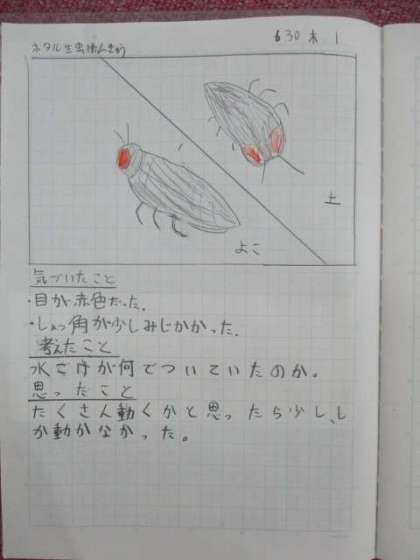 5月のホタルの出前授業で観察した幼虫が成虫になって帰って来ました♪子どもたちはホタルが光る様子の映像を見て,「星みたいできれい‼」と感動し,思わず拍手をしていました。1人1匹ずつホタルを借り,観察して絵を描きました。楽しく観察しながらたくさんの発見があったようです。