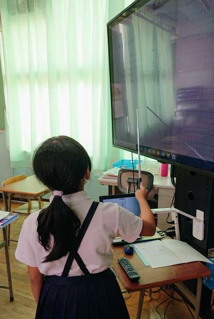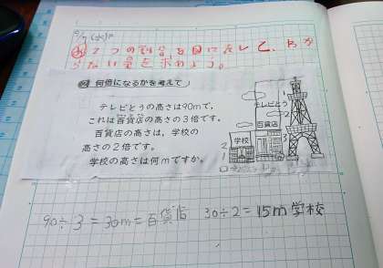その後ノートを書画カメラでモニターに映し出し、考え方をみんなの前で発表しました。