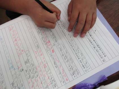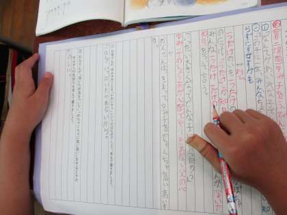 国語科で『一つの花』というお話の学習をしました。自らの命を懸けて我が国を守るために戦う・・・。その恐ろしさに加え、幼い『ゆみ子』や、ゆみ子の両親の気持ちについて読みを深め、各々がワークシートに書いていきました。最後に『平和』であることの幸せを改めて感じとった学習でした。