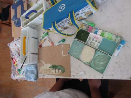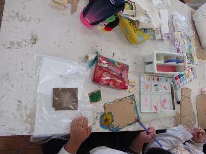 木の板なので、水の量など気をつかいながら丁寧に塗ることができていました。