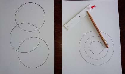 ということで、厚紙と画鋲を使って実際に円をかいてみました。
