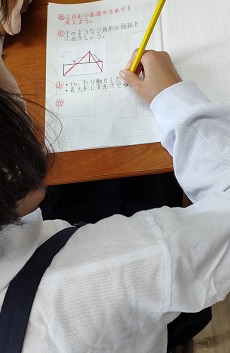 写真のノートは、上手に三角形を長方形に変形させて求めようとしています。