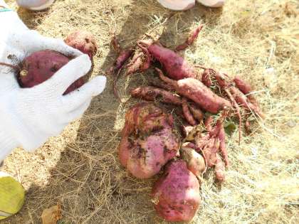 たくさんのつるを抜いてそっと掘ってみると・・・