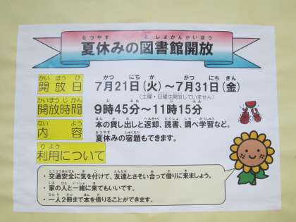 玄関横のチラシにも注目。夏休み中のいろいろな情報が