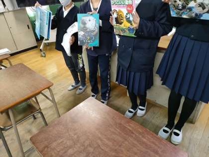クラスでは、動物に関わる本や歴史に関わる本についての発表がありました。