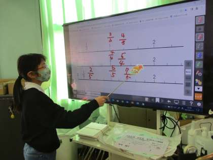 算数科で「分数」の学習を行っています。既習を思い出すところから学習に入り、4年生の学習へと発展させていきました。今まで習ってきた分数は「真分数」であることが分かりました。そして、新しく「仮分数」や「帯分数」も習いました。分数の学習でも「九九」の学習が必須であることを皆で確認しました。これからも、今までの学習に戻りながら中身を深めていこうね。(*^▽^*)
