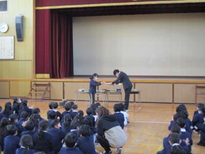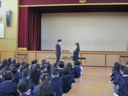 また、先日紹介した「第9回 伝えよう!いのちのつながり」の作文募集での優秀賞の賞状が届き、表彰しました。