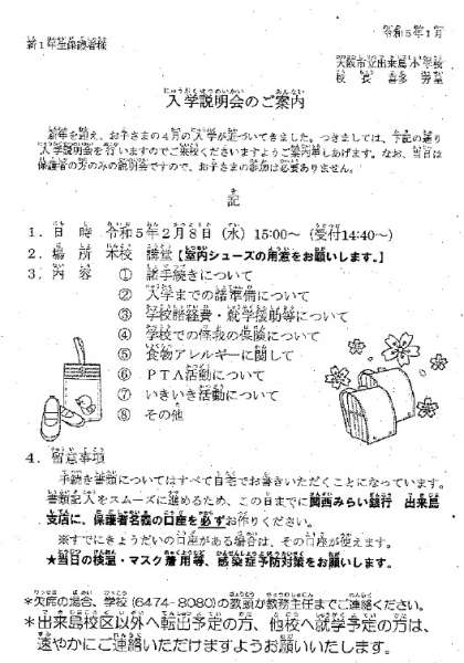 「令和5年度 新1年生入学説明会」を、以下のとおり実施します。