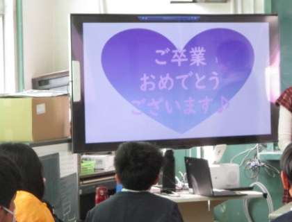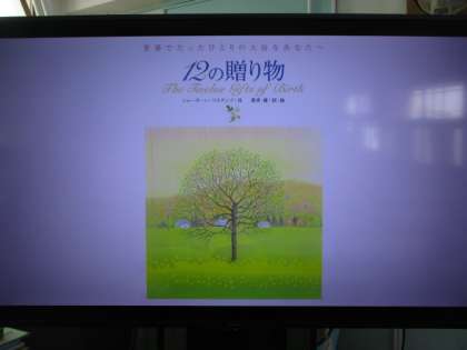 パワーポイントで絵本の挿絵にオルゴールの音響を組み合わせ、6年生に「12の贈り物」を届けました。