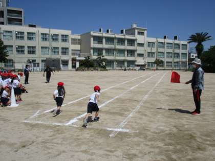 お友だちの走る姿をみて、自然に応援の声がでる1年生。