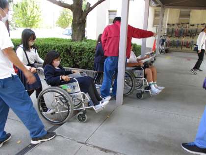 2、車いすを動かす時には乗っている相手に必ず声掛けを行う。