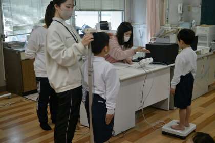 1年生が保健室に来ました。けがをしたとき、しんどくなった時に保健室に来てねとお話があり、身長と体重を測定しました。保育所・幼稚園のときよりも大きくなっているね。