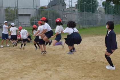 The weather was a little sunny. We did orienteering at Nishiyodo Park. Led by the 6th graders, we went around each corner and played games. After orienteering, we had a rope skipping competition. Thanks to all the practice, we had a lot of good results. It started to rain a little, but it was a fun day.